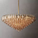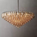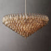 Our fixtures celebrate the minimalist spirit of the period in a grand way. From a cascading steel frame. dozens of hand-blown glass polyhedra hang from individual hooks. Illuminated from within. the faceted chandelier greatly reflects and refracts light.